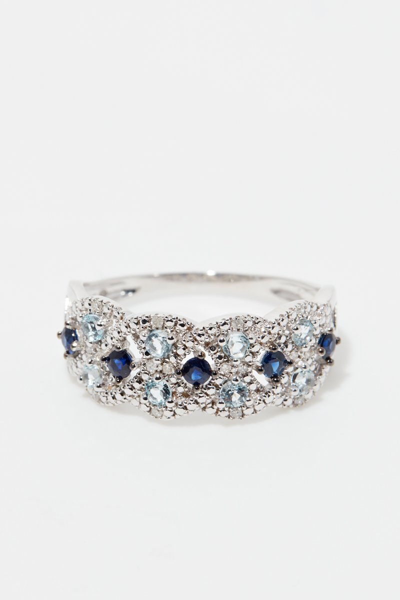 Anel Astéria - Ouro branco, safiras e topázios