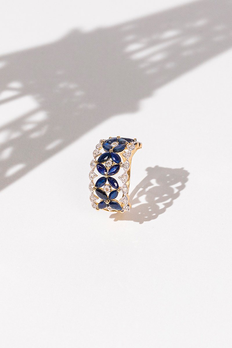 Anel Setar - Ouro amarelo, safiras e diamantes