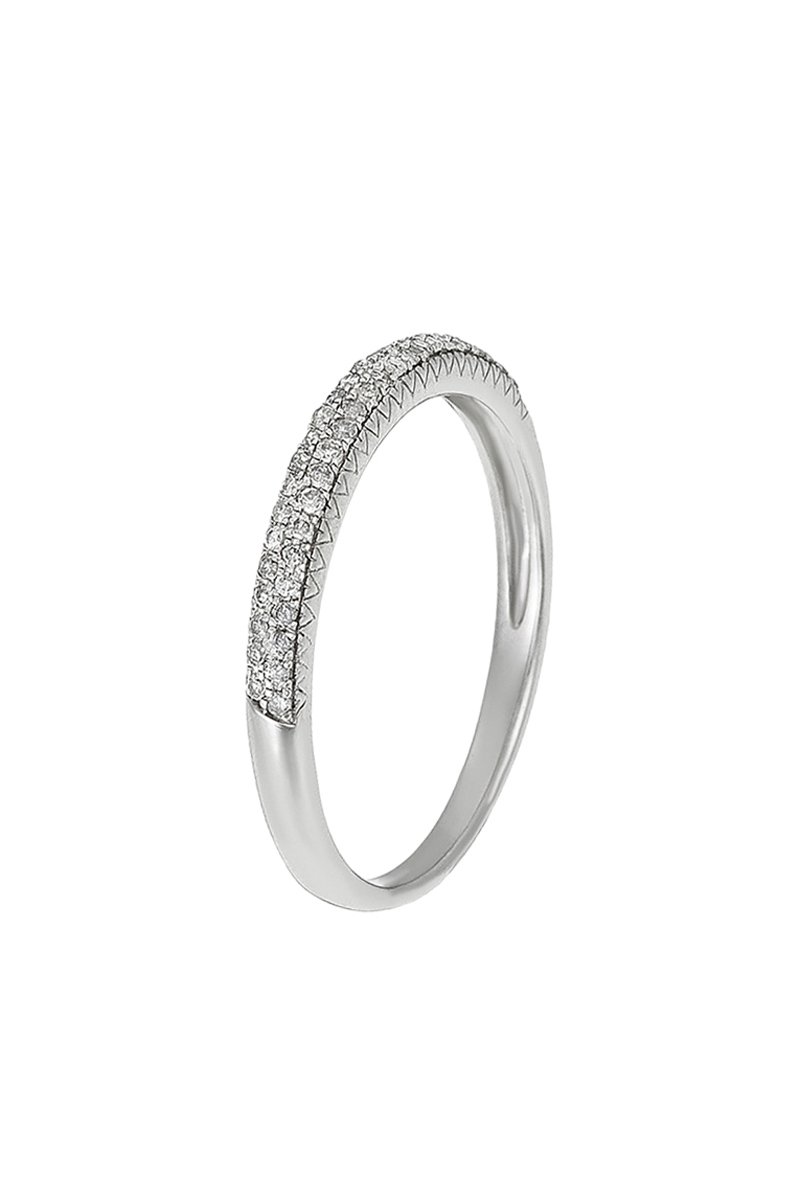 Aliança em ouro branco com 50 diamantes.