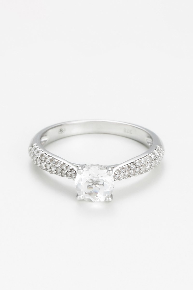 Anel Tawo - Ouro branco, diamantes e topázio