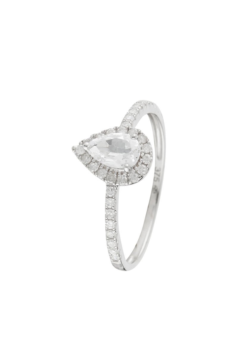 Anel Pescara - Ouro branco, diamantes 0,202 quilates/32 e topázio 0,825 quilates/1
