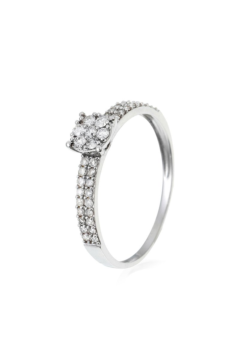 Anel de ouro branco com 36 diamantes.