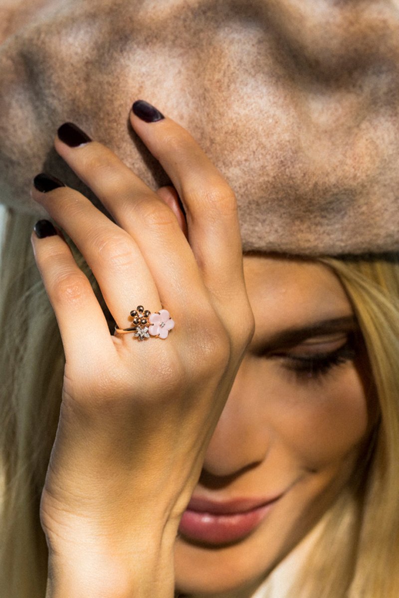 Anel Floraison - Ouro rosa, cerâmica e diamantes