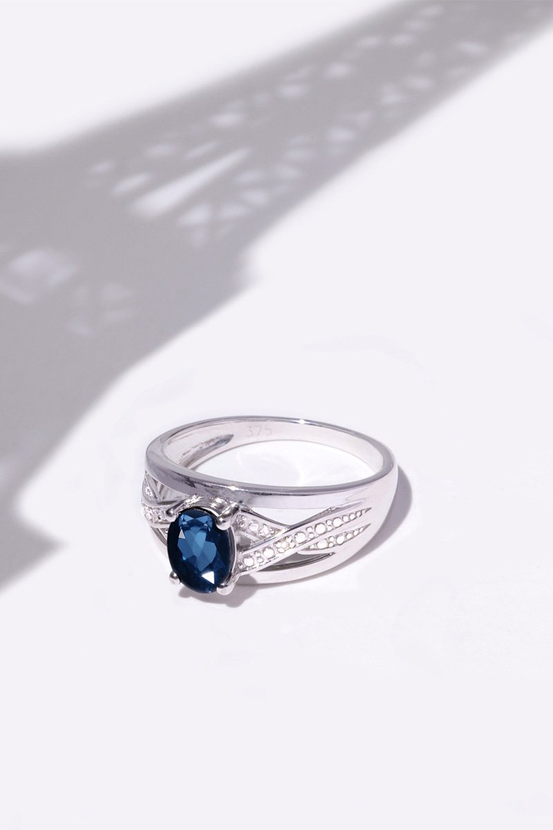 Composição: ouro branco 375/1000, safira 1 quilates/1 e diamantes 0,01 quilates/2