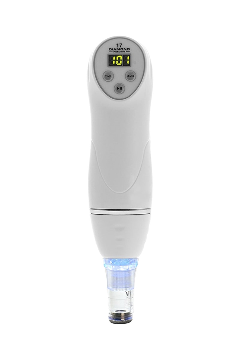 3 graus de espessura diferentes de pontas de diamante: as pequenas pontas de diamante são utilizadas nas partes delicadas e sensíveis da pele (à volta dos olhos), as pontas de diamante médias são utilizadas no rosto e no pescoço.