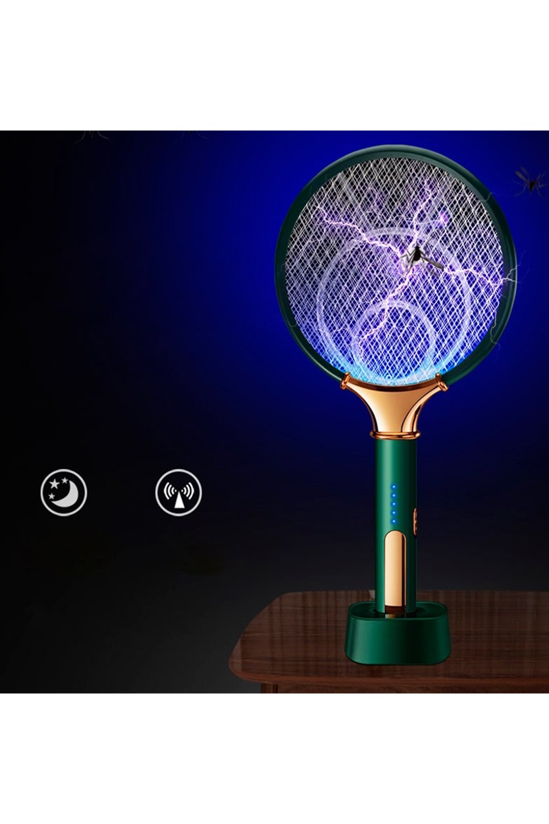 - modo contínuo, com luz LED para atrair os mosquitos, ele emite um choque quando o mosquito toque a pá. Pode ser utilizado com o seu suporte/base de carregamento, perfeito para ficar num móvel ou uma mesa sem preocupar-se.
