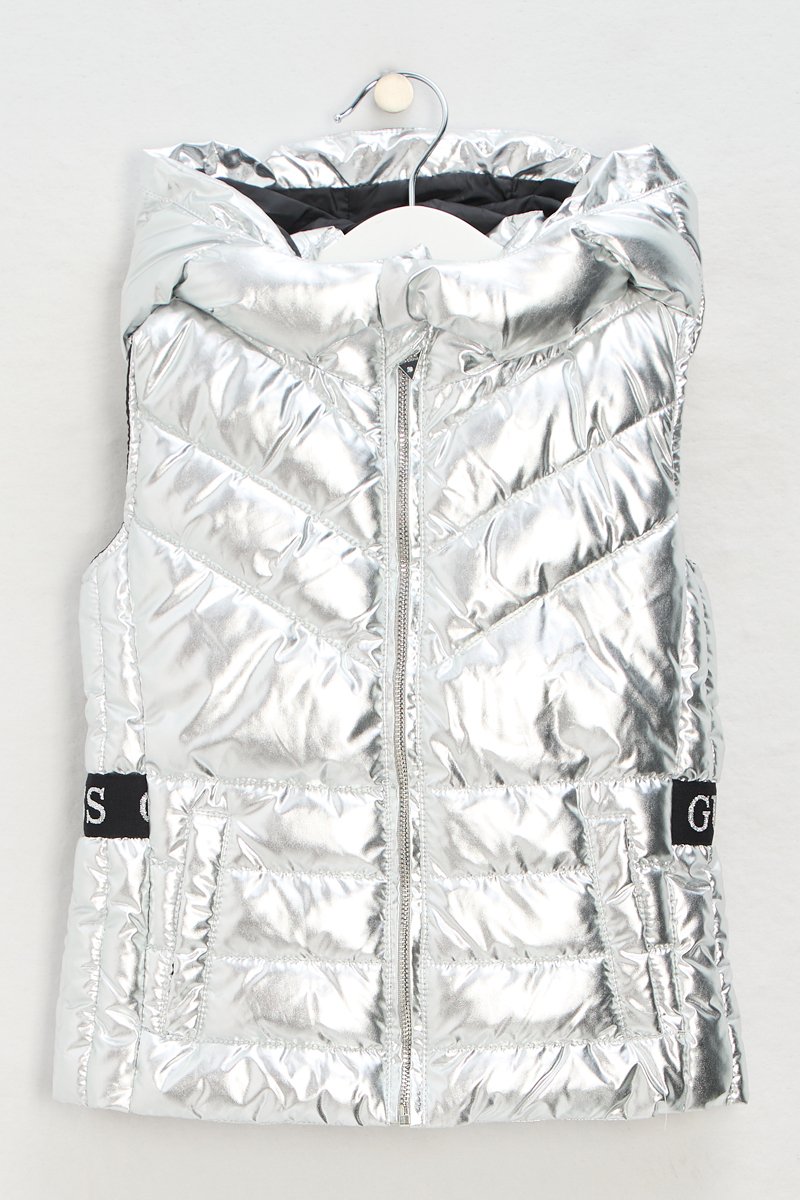 Colete acolchoado com capuz Metallic logo - Prateado