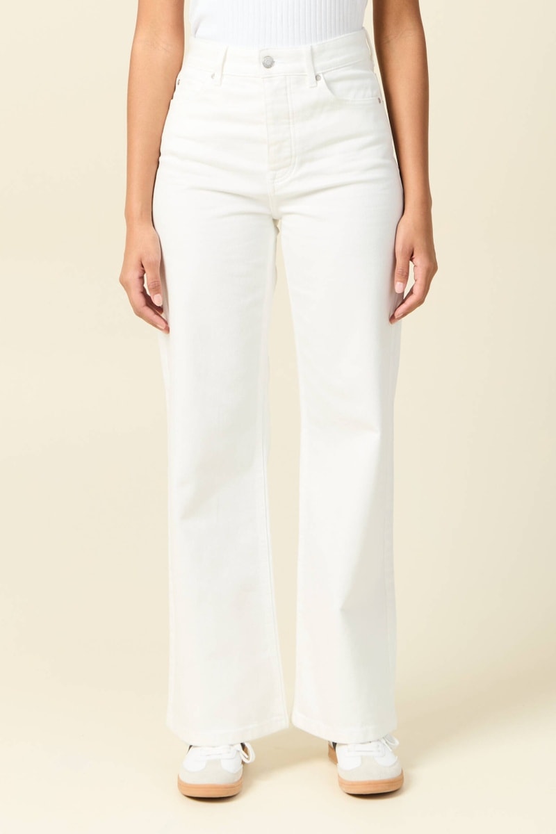 Calças de ganga largos de cintura subida em algodão biológico - Branco