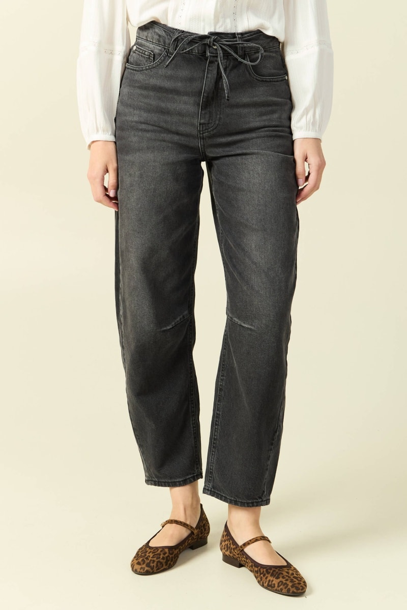 Calças de ganga barrel 7/8 de cintura subida - Cinzento