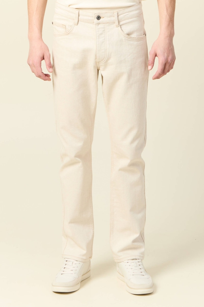 Calças de ganga regular em algodão biológico - Bege