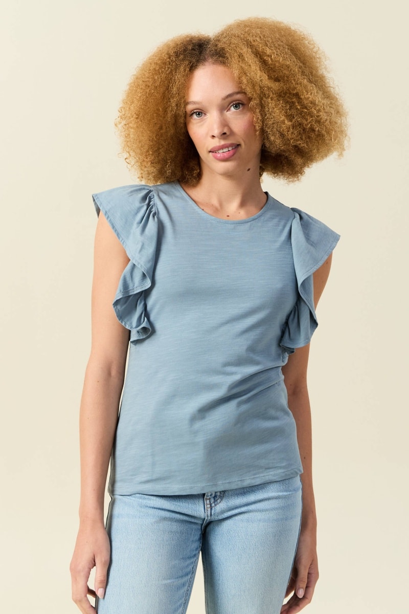 Folhos nos ombros.