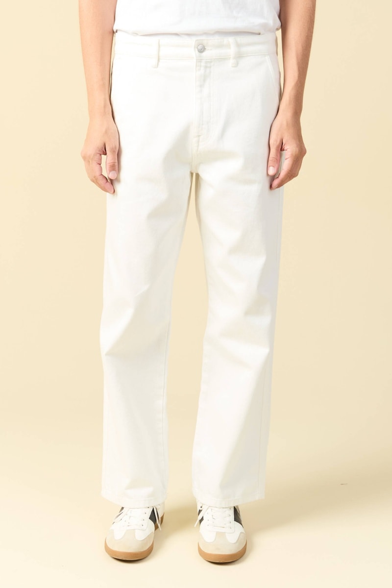 Calças de ganga largeem algodão biológico - Branco