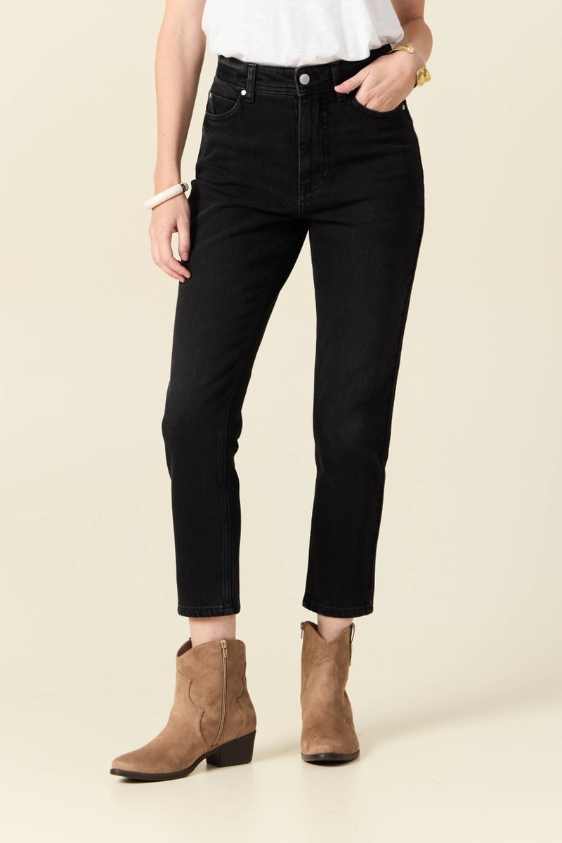 Calças de ganga 7/8 de cintura alta - Preto
