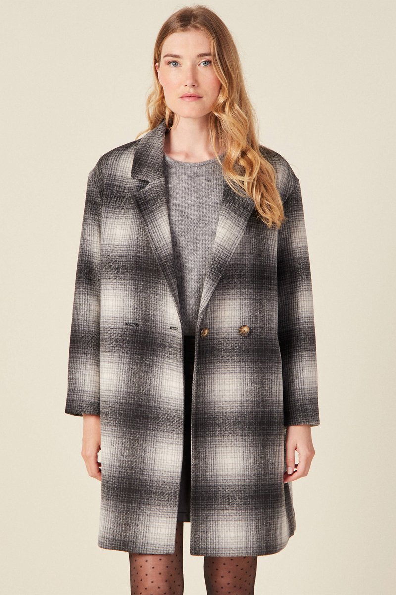 Sobretudo direito comprido em lã misturada.