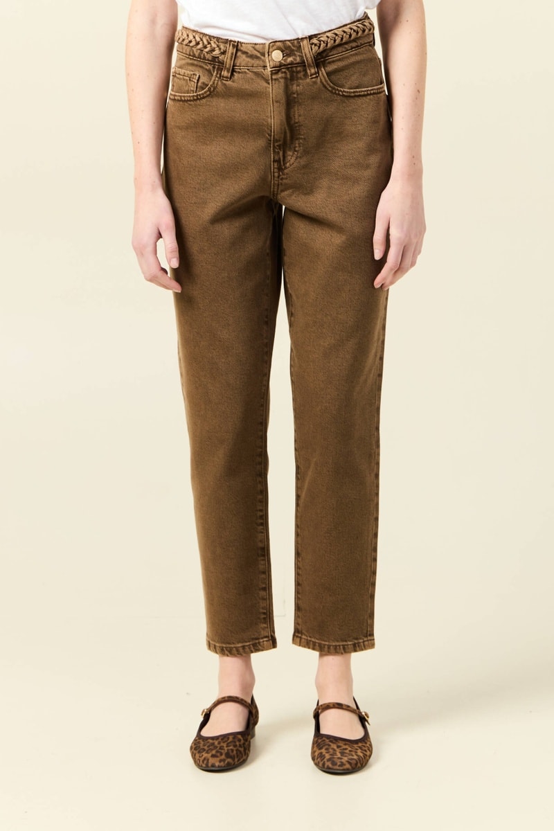 Calças de ganga mom em algodão biológico - Castanho