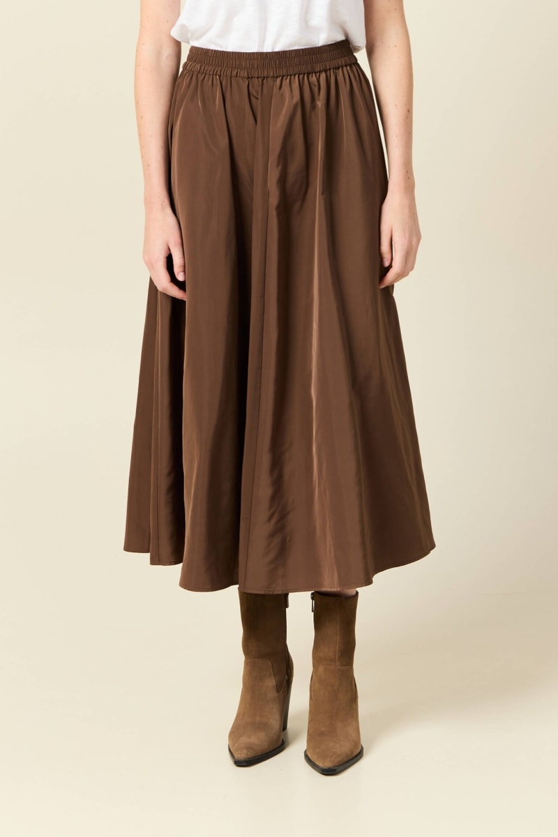 Saia midi cintura subida - Castanho