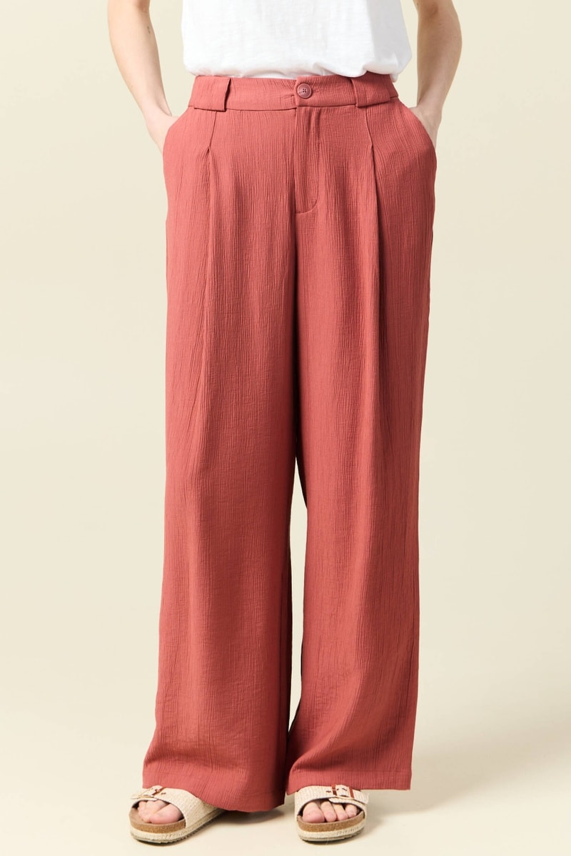 Calças largas de cintura subida - Rosa