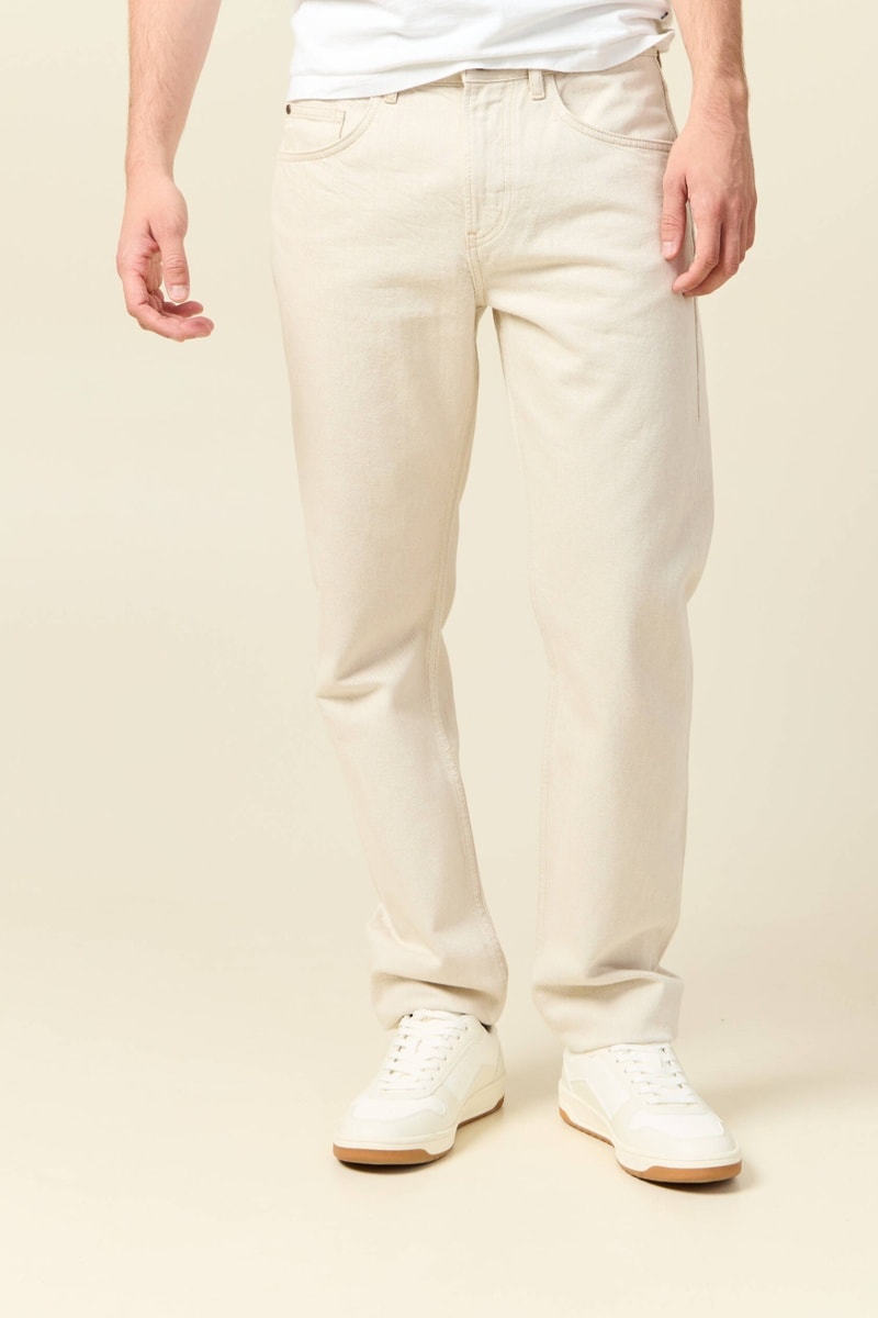 Calças de ganga straight em algodão biológico - Cru