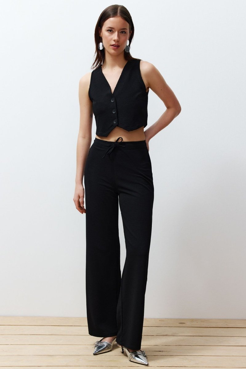 Colete de fato e calças wide legs - Preto