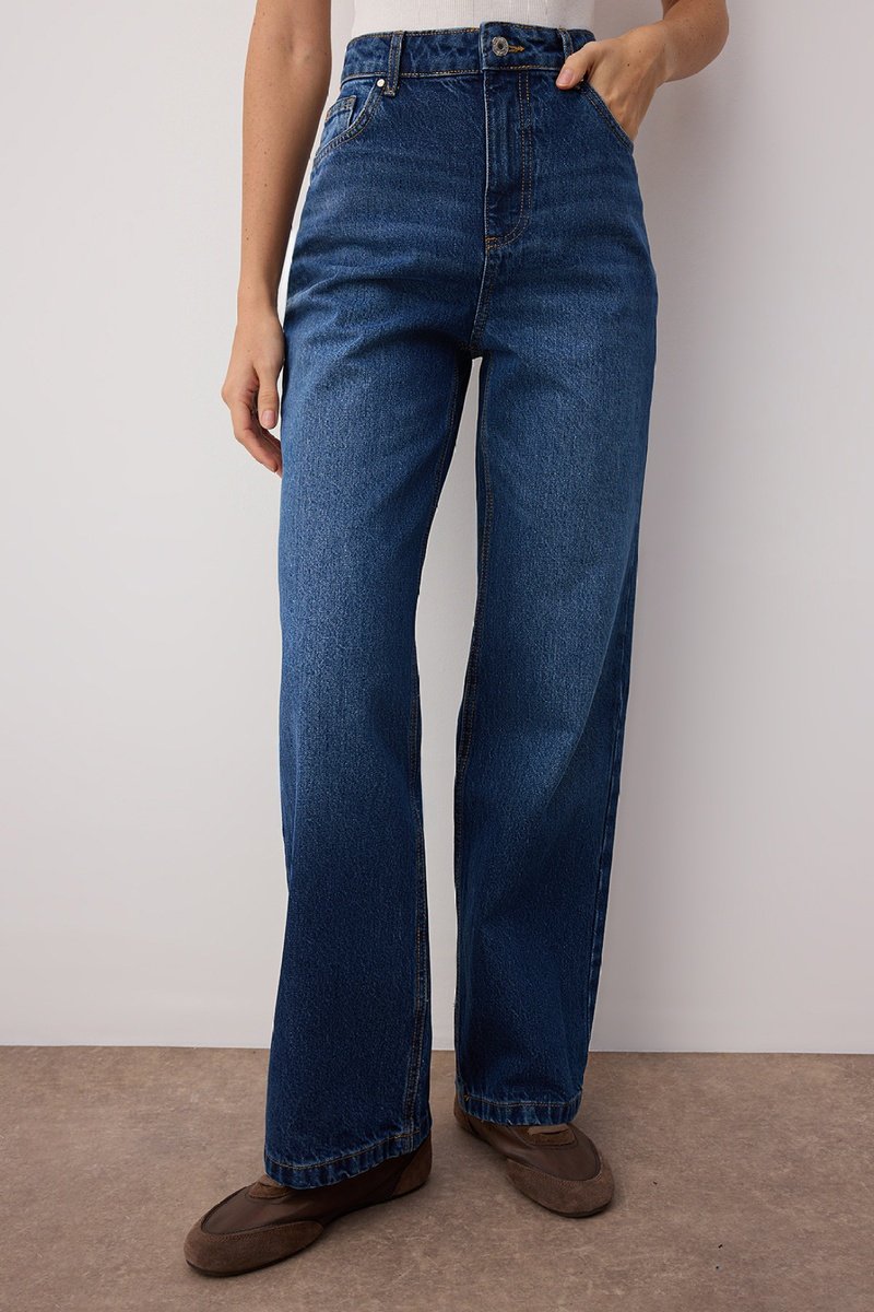 Calças wide legs cintura subida e calças cintura subida - Azul-médio e azul