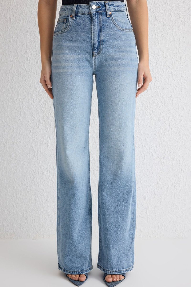 Calças de ganga wide legs cintura alta - Azul-claro