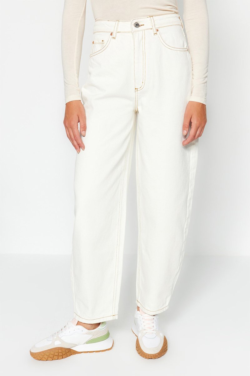 Calças de ganga mom - Branco