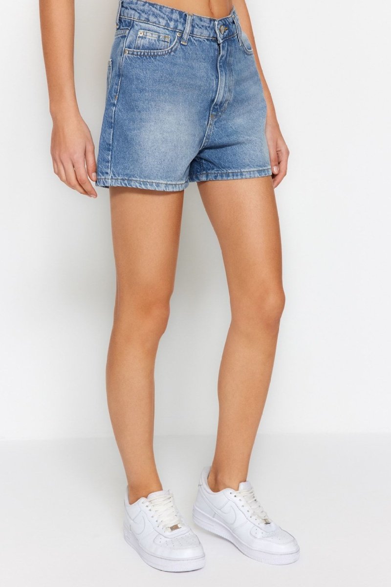 Calções de ganga de cintura subida - Azul