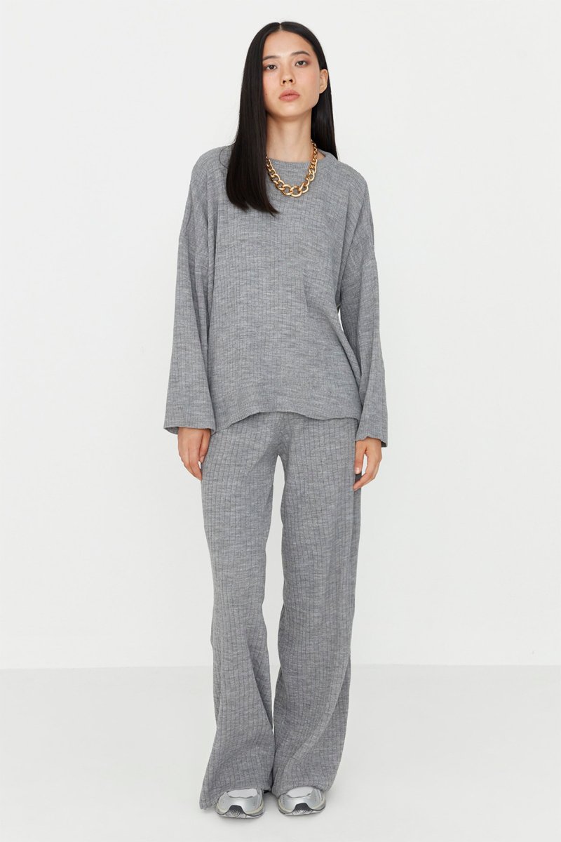 T-shirt e calças wide legs - Cinzento