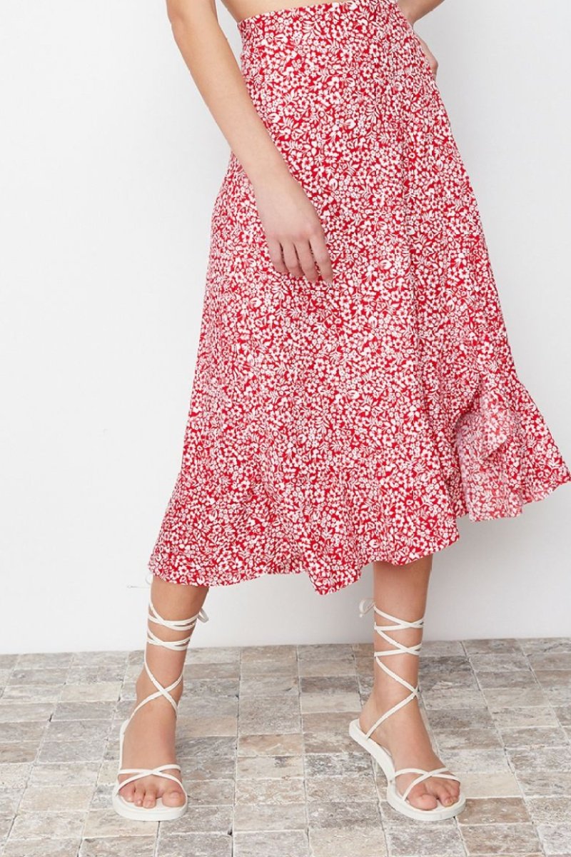 Saia média cintura subida - Vermelho
