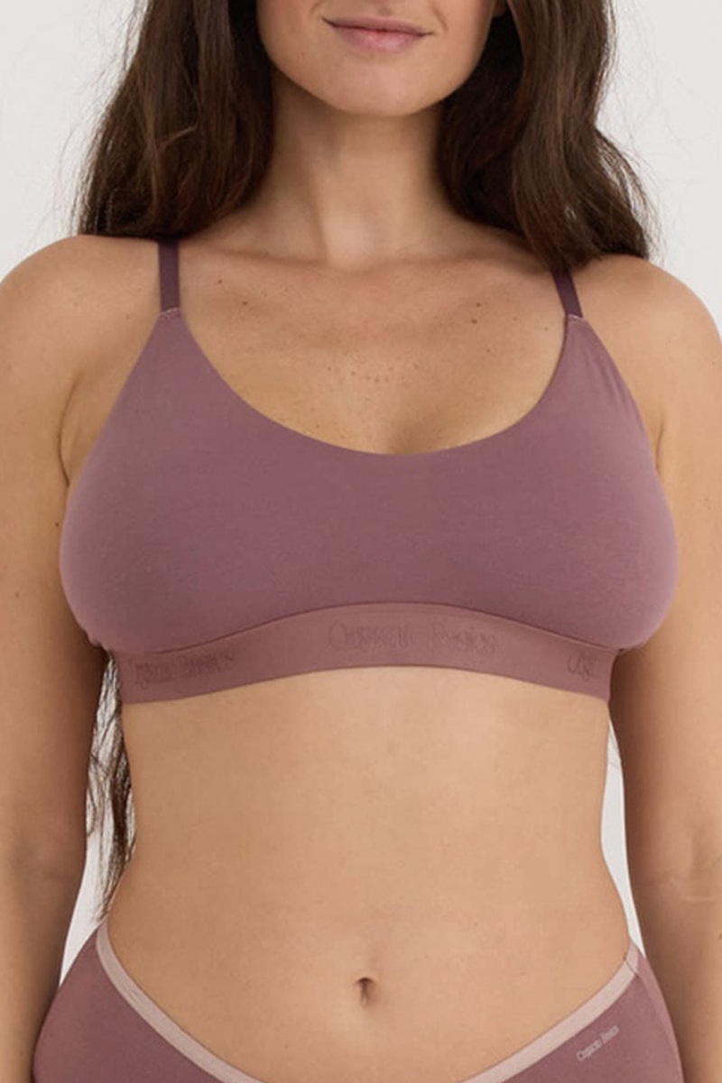 Soutien desportivo em algodão biológico misturado sem aros.