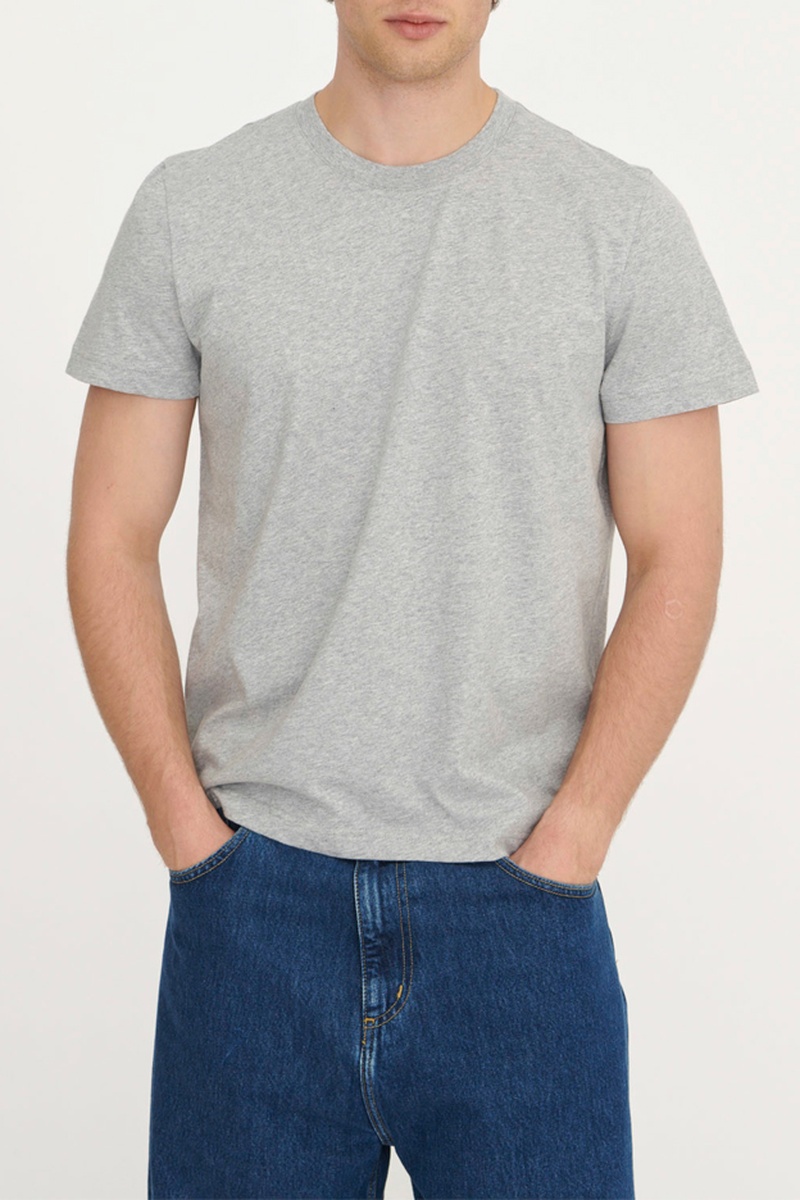 T-shirt regular em algodão biológico - Cinzento mesclado
