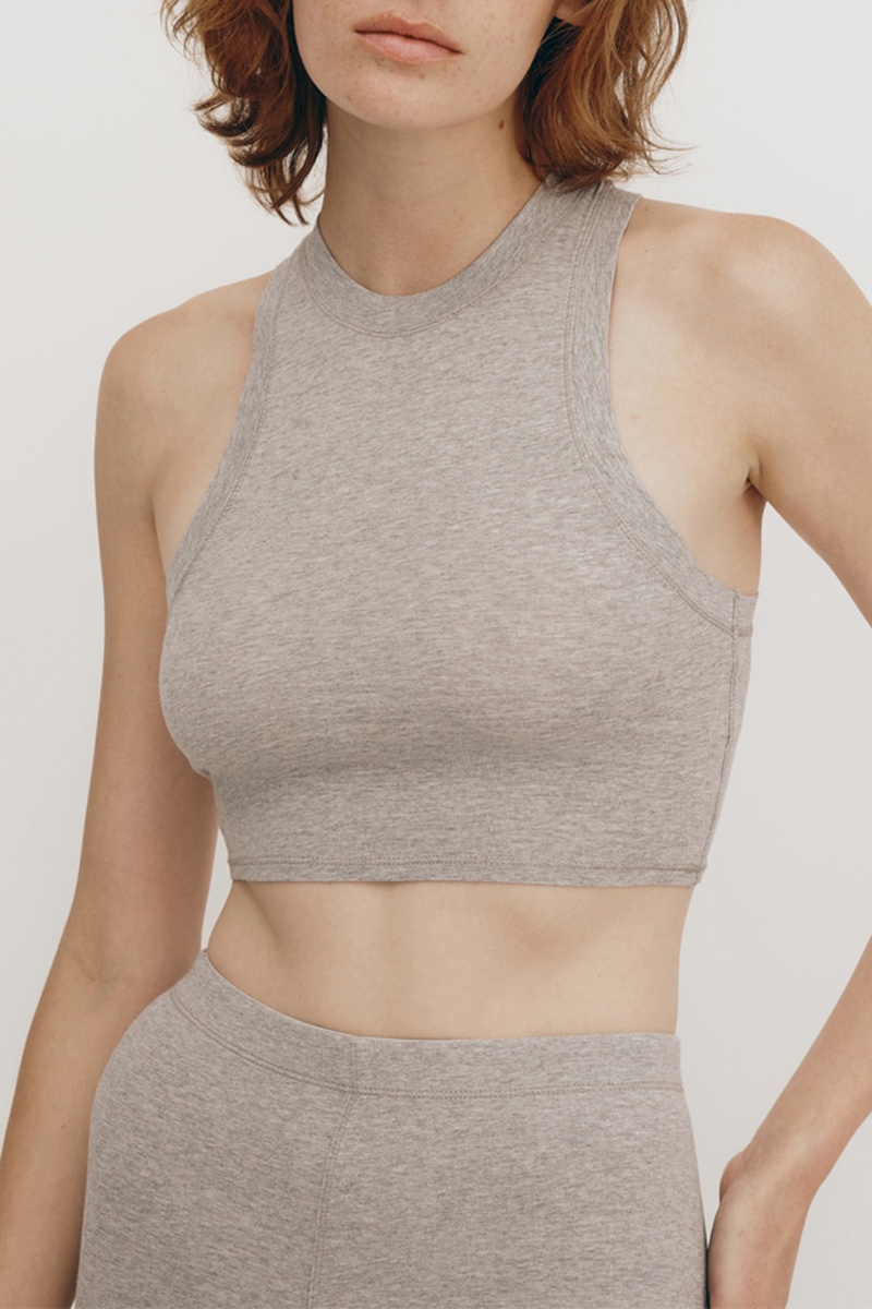 Crop top em algodão biológico - Cinzento-claro mesclado
