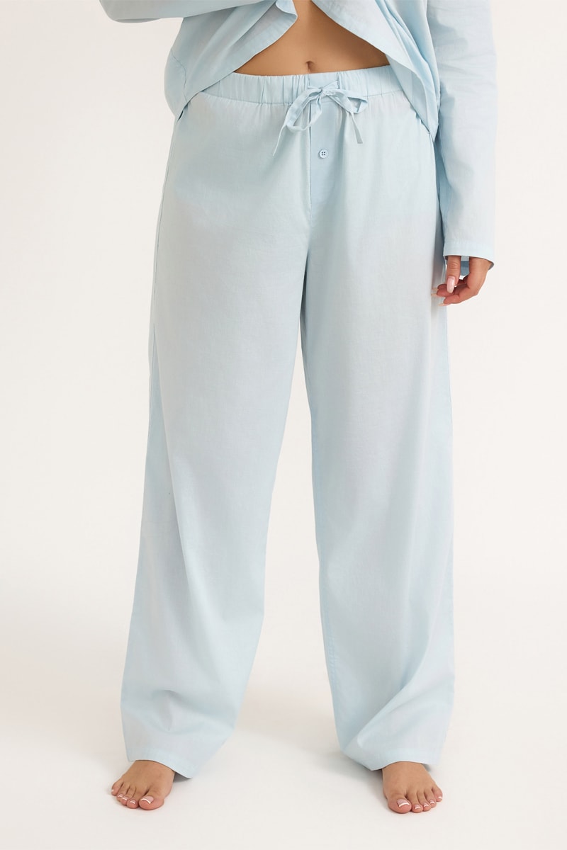 Calças em algodão biológico - Azul-celeste