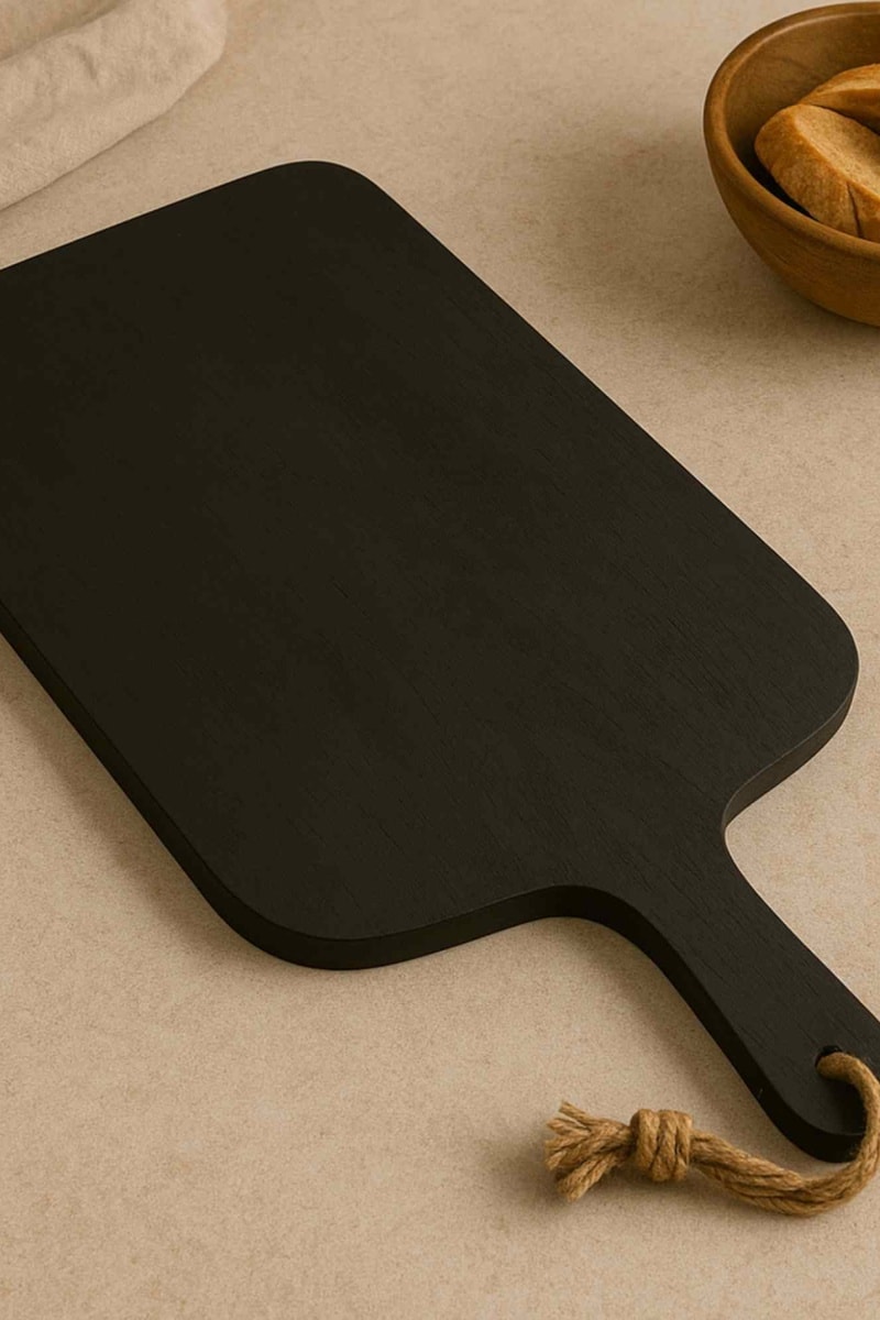 Tábua de cortar em madeira de seringueira.