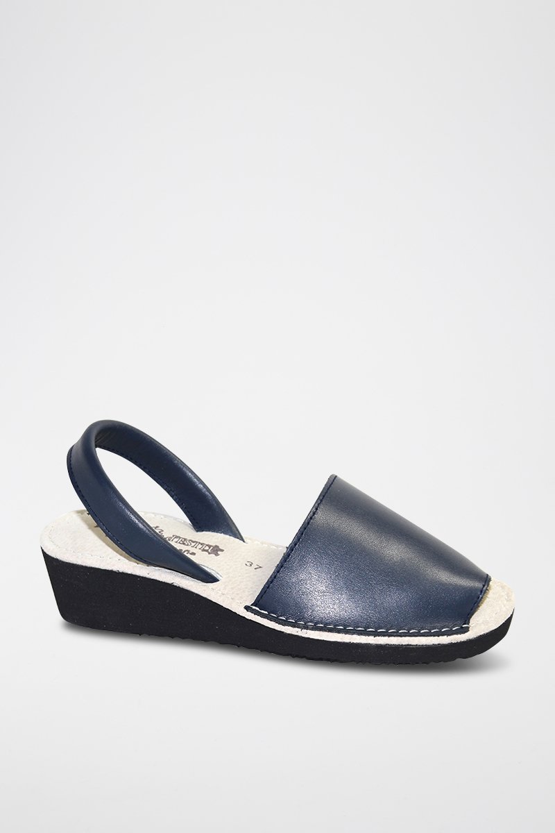 Sandálias Avarca com cunha de couro - Azul