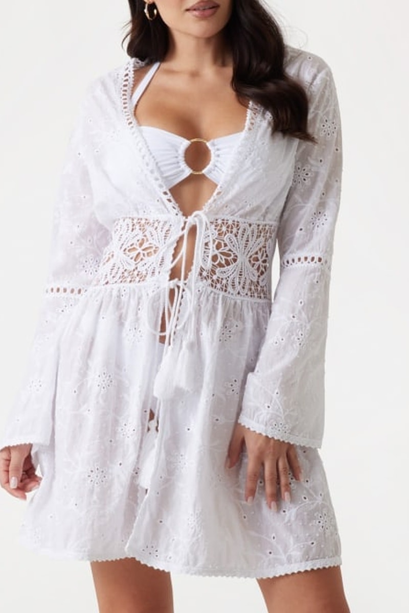 Quimono em bordado inglês - Branco - Guess