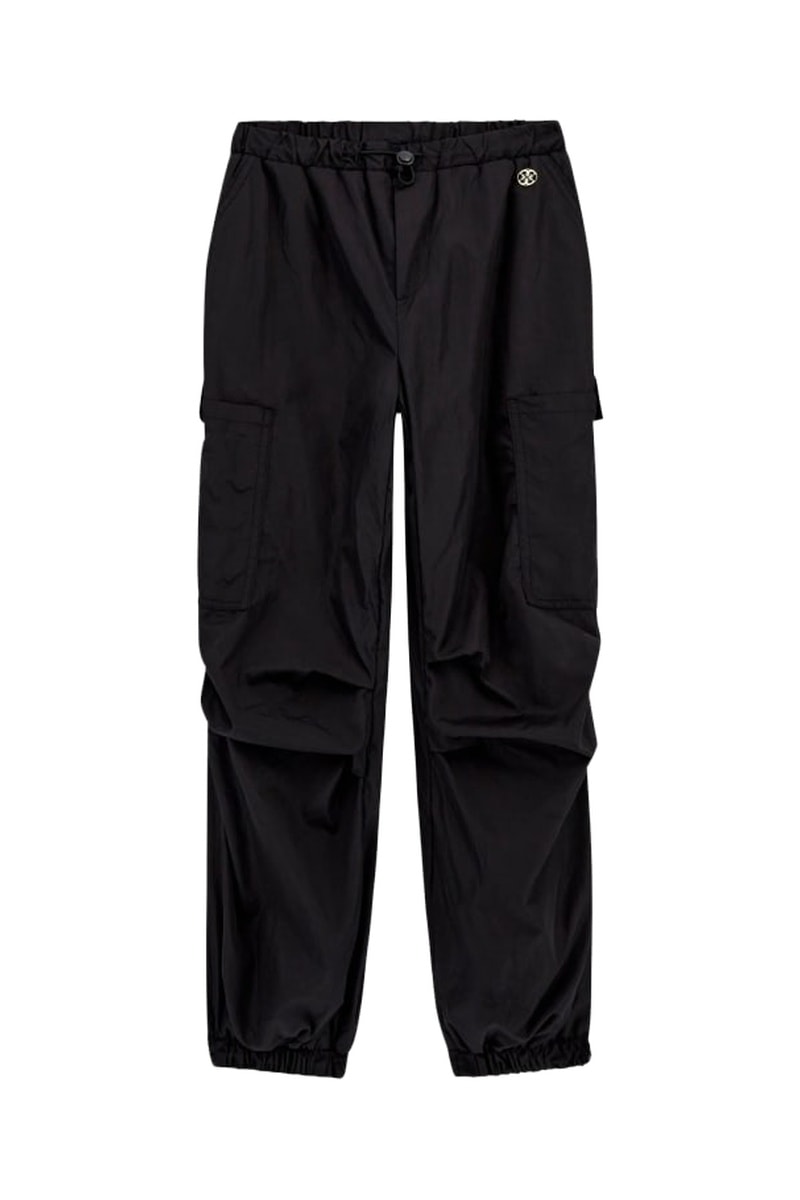 Cintura e bainha elásticas com cordões de ajuste e tancas.