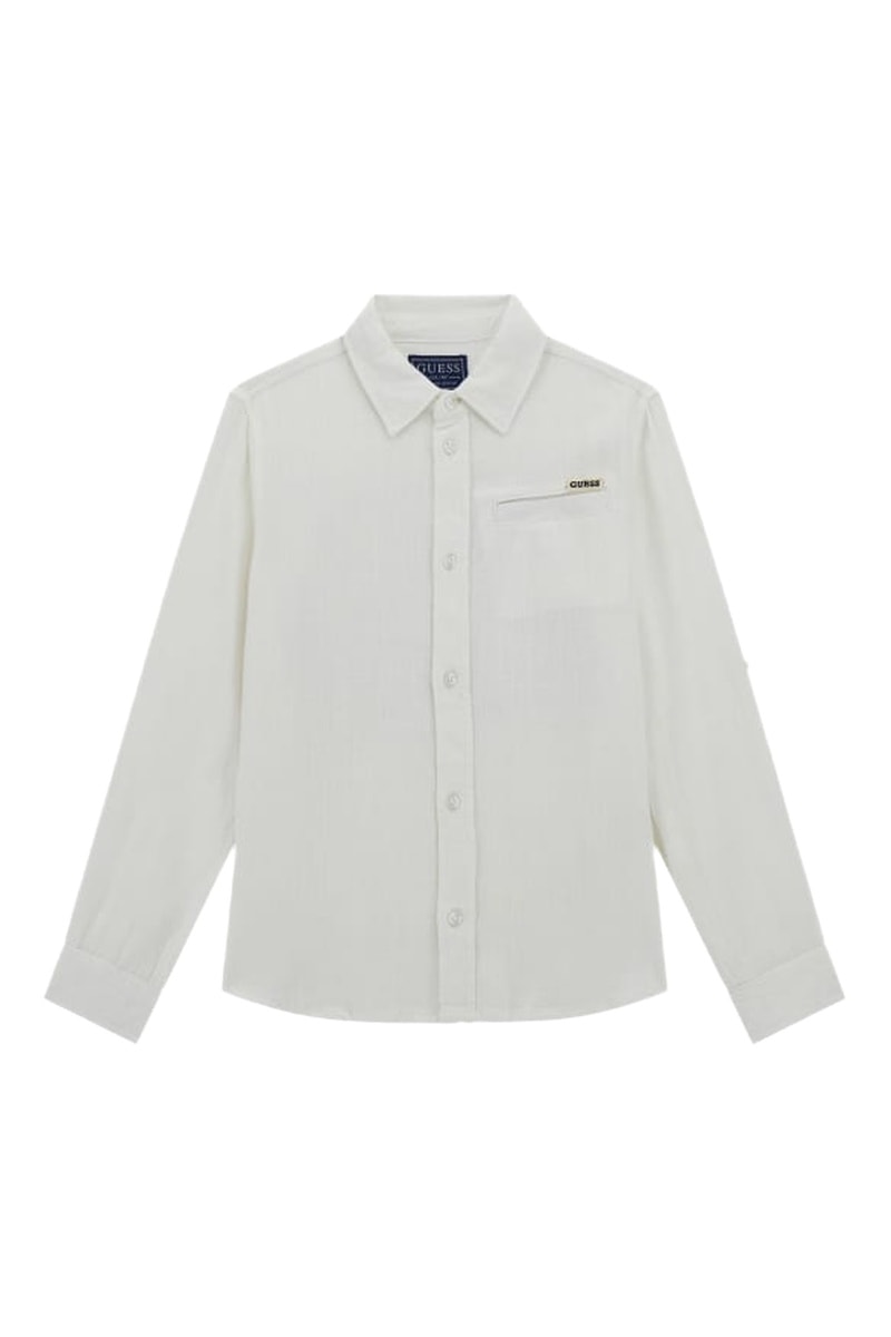 Camisa de mangas compridas arregaçáveis com carcela abotoada.