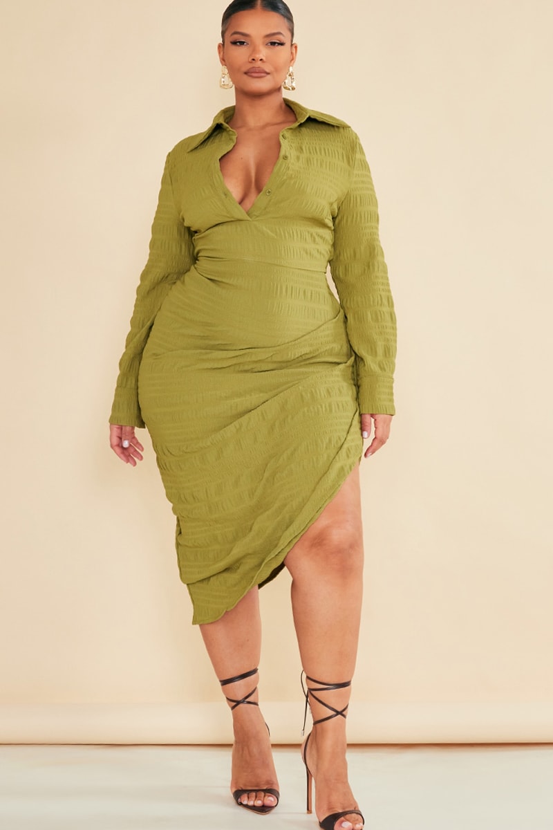 Vestido justo - Verde-azeitona