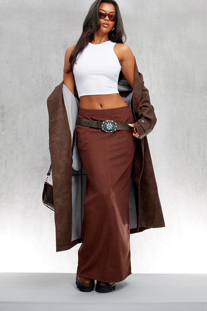 Saia comprida de cintura alta - Castanho