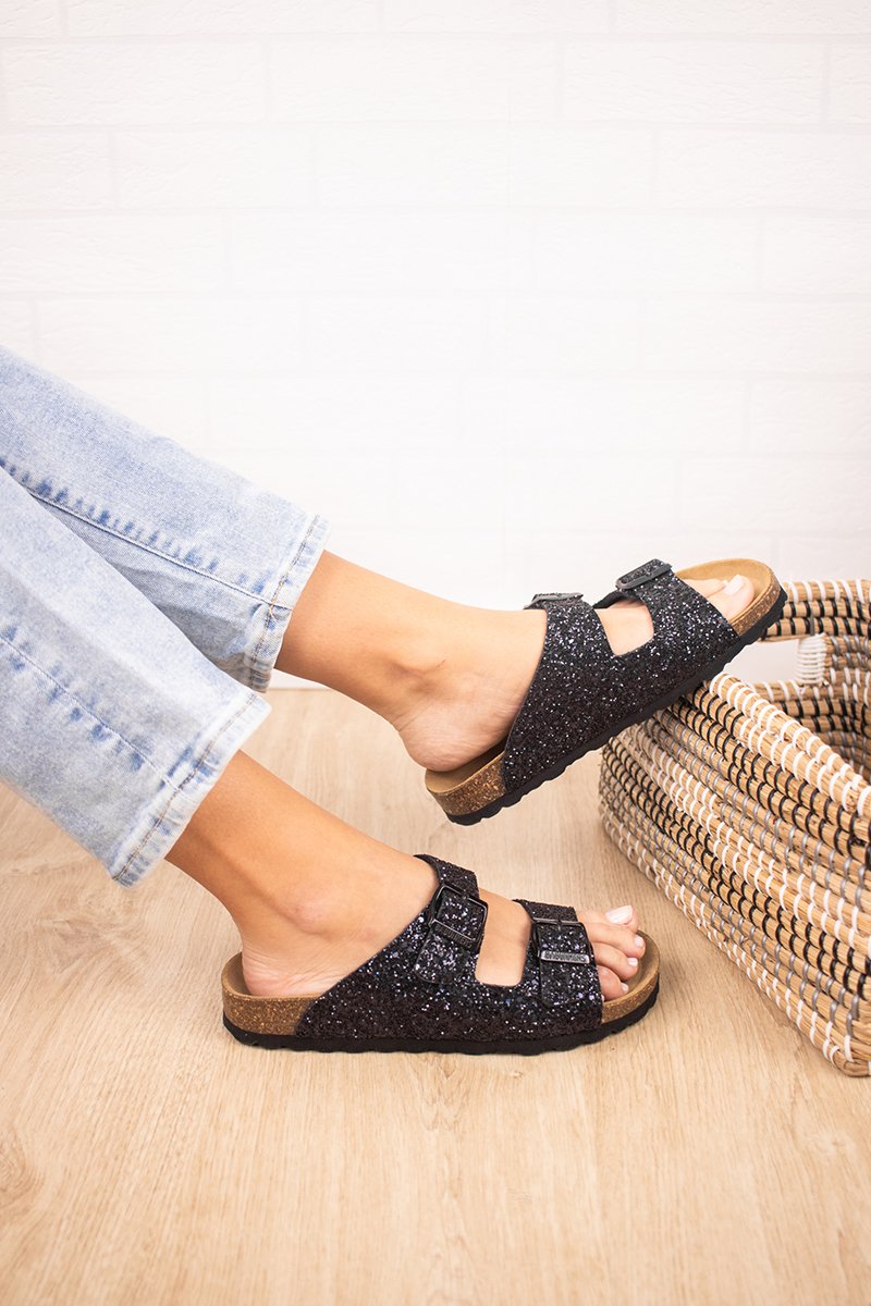 Mules com purpurinas.