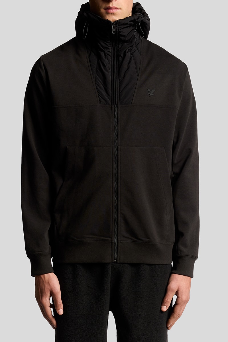 Casaco com capuz com atilhos de ajuste e travões de cordão.
