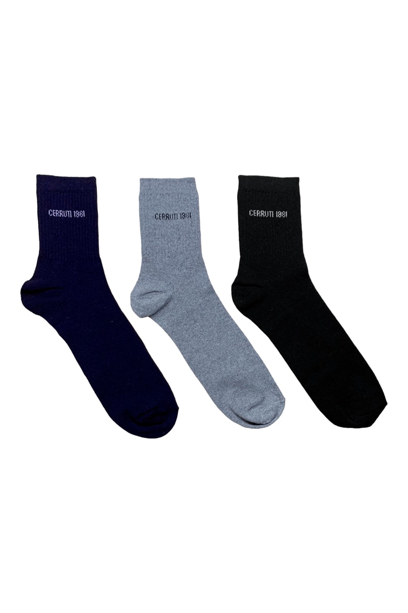 3 pares de meias - Azul-marinho, cinzento-claro mesclado e preto - Cerruti 1881