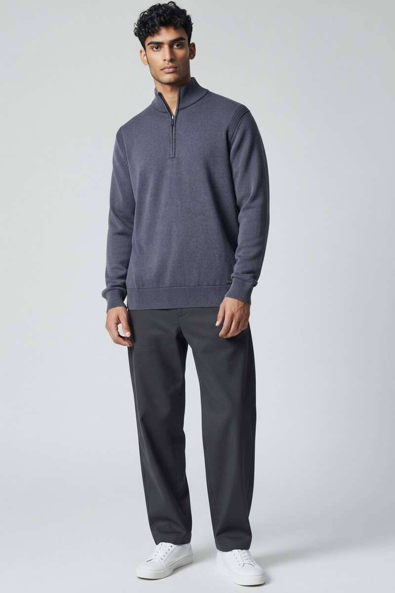 Gola subida com fecho zip.