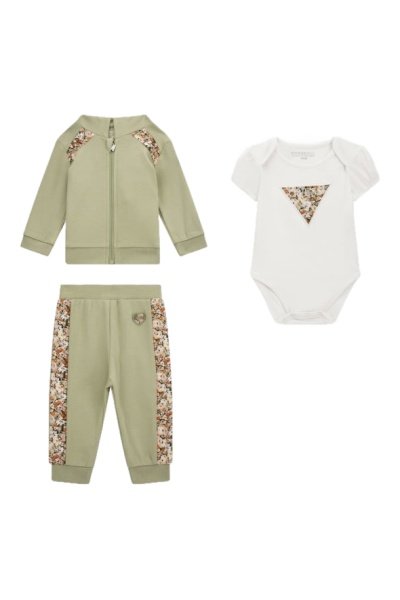 Conjunto 3 peças em algodão biológico - Verde-claro e cru