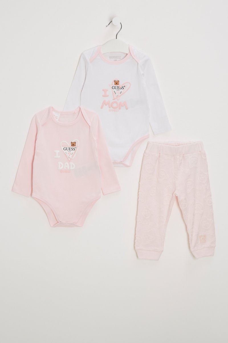 Conjunto 3 peças em algodão biológico - Rosa e branco