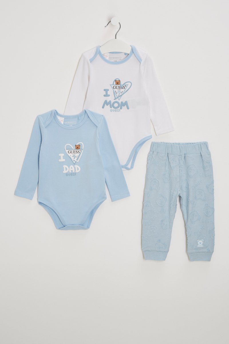 Conjunto 3 peças em algodão biológico - Azul-celeste e branco
