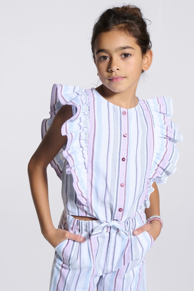 Camisa de mangas curtas com folhos.