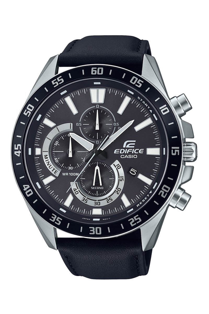Relógio de quartzo em couro - Cronómetro - Preto e prateado