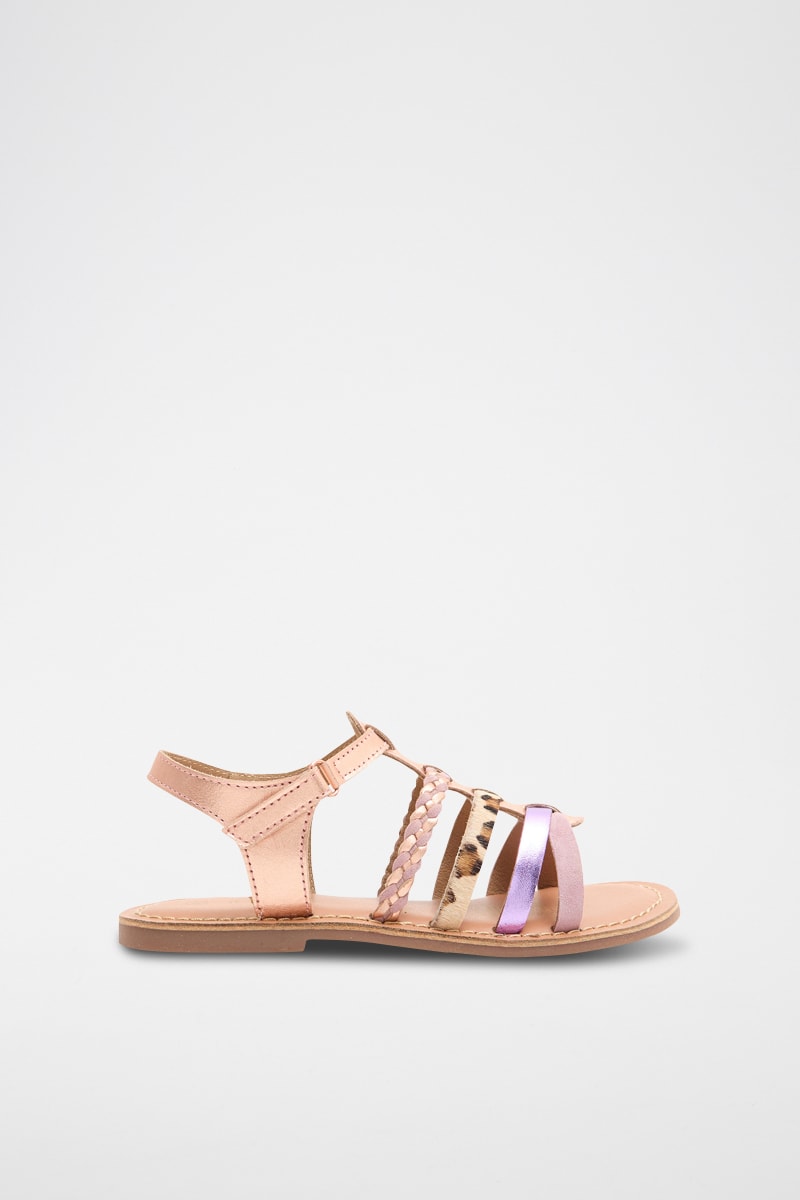 Várias tiras 2 das quais metalizadas, 1 com estampado leopardo e 1 com efeito entrançado.